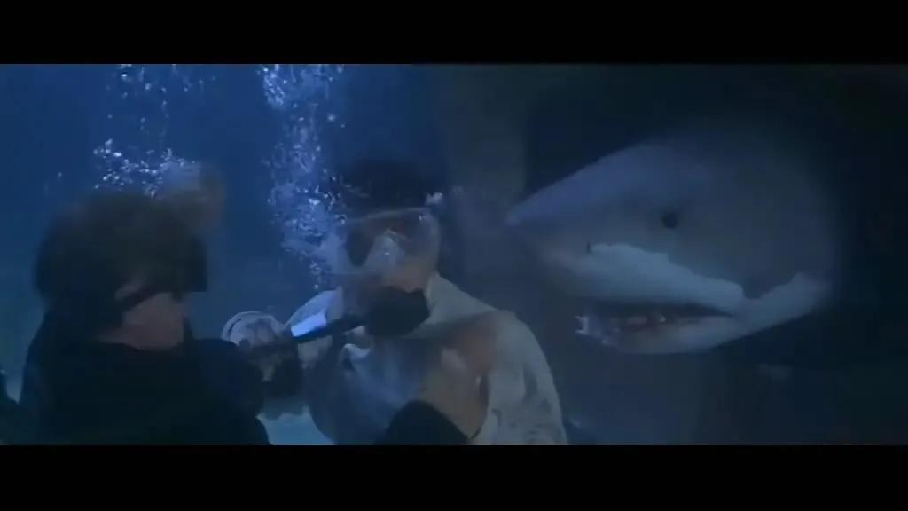 陈家驹两人一路奔逃来到水族馆,下水去取铀核心,对方下水进行抢夺,水下动作戏上演,陈家驹没有氧气瓶加持,双拳难敌四手,幸而有鲨鱼的帮忙,斗智斗勇许久之后,对方损失几员大将讨不到便宜,直接开枪打烂了水族馆的玻璃,劫持安妮和铀核心上船离开,陈家驹在岸边狂奔追逐,抢过路边的一辆跑车,全力加速飞到了船上,顺利逮捕卡德拿回了铀核心。