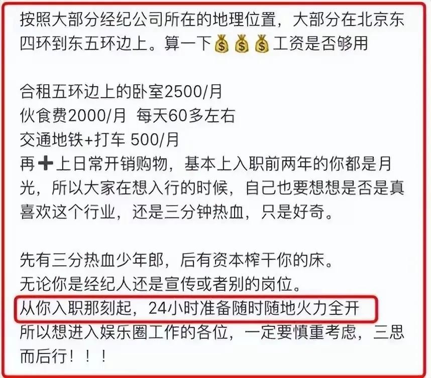 嘉行传媒的招聘风波反映出娱乐圈公司对待员工薪资待遇的问题。在很多人看来,娱乐圈是一个光鲜亮丽的行业,但实际情况却并非如此。许多从事娱乐圈相关工作的人员,尤其是基层员工,实际收入并不高。这使得他们在面临生活压力时,往往感到力不从心。