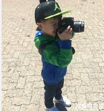 弟弟“森碗”个子和相机支架差不多高,就已经是摄影发烧友了。