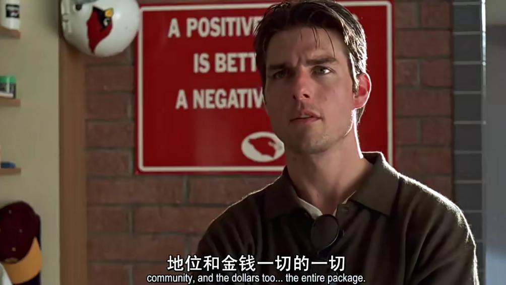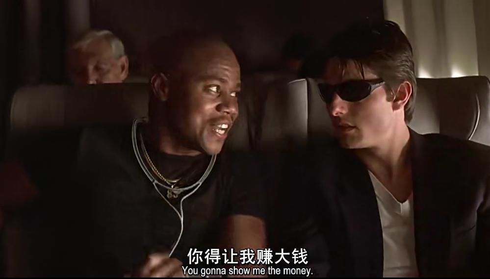 Show me the money,这句话在片中反复出现,是罗德用来提醒杰瑞不要忘记履行职责,也是杰瑞用来鼓励自己咬牙坚持的一个信念。