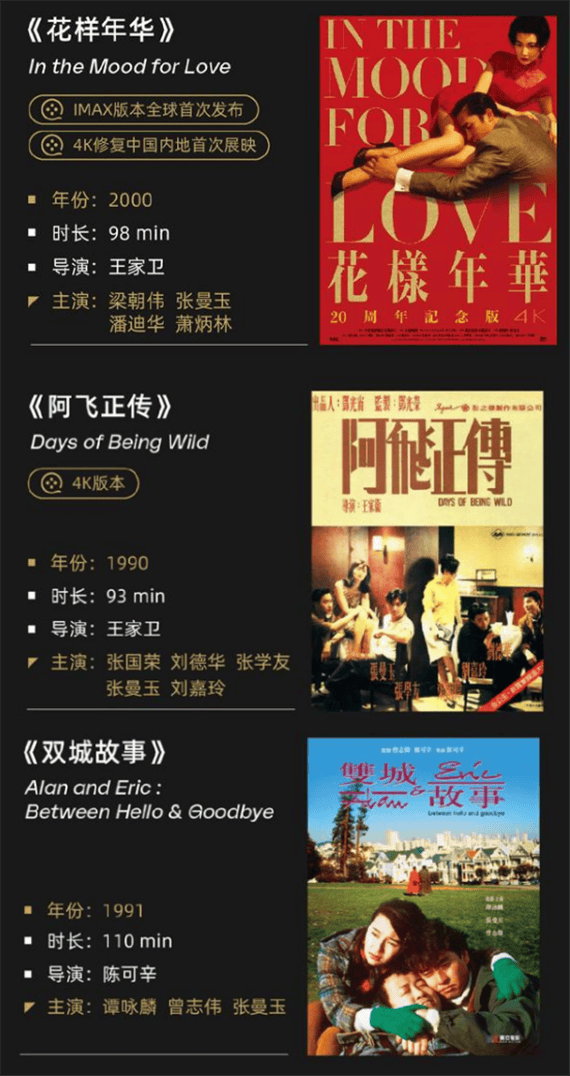 除了《花样年华》,王家卫的另一部代表作《阿飞正传》也在展映片单中。