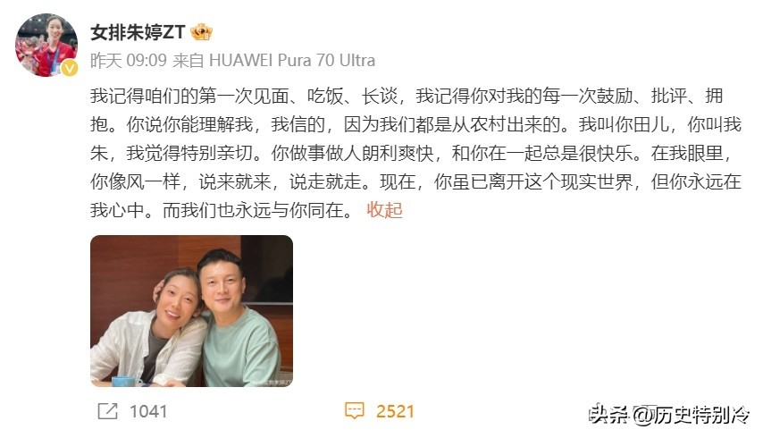 此消息一经传开后,一些了解田宗琦的人对此表示惋惜,女排运动员朱婷发文表示沉痛哀悼,字里行间充满了对田宗琦的不舍。