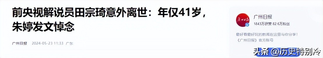 2、原文登载于广州日报2024年5月23日:《前央视解说员田宗琦意外离世:年仅41岁,朱婷发文悼念》