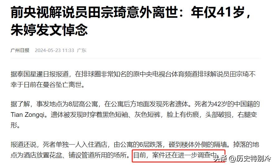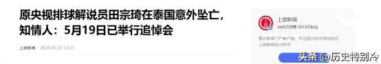 1、原文登载于上游新闻2024年5月23日:《原央视排球解说员田宗琦在泰国意外坠亡,知情人:5月19日已举行追悼会》