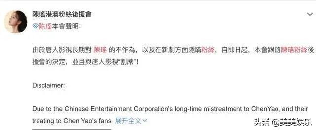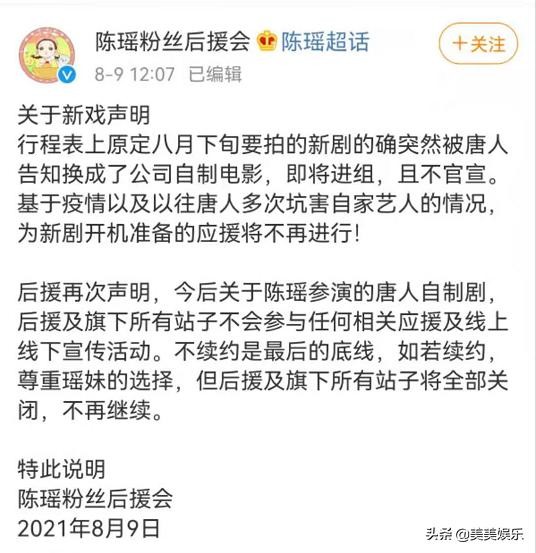 粉丝们当然不同意,后援会为了给陈瑶争取权益,毅然决然地联合发声明抵制唐人影视。