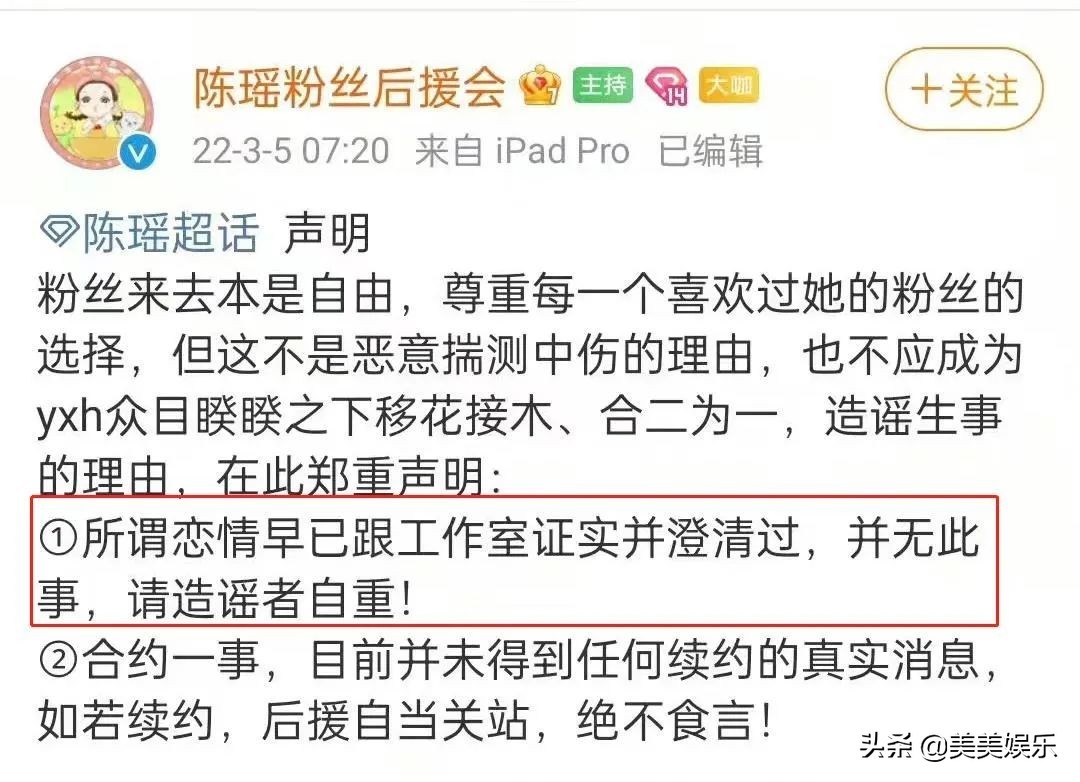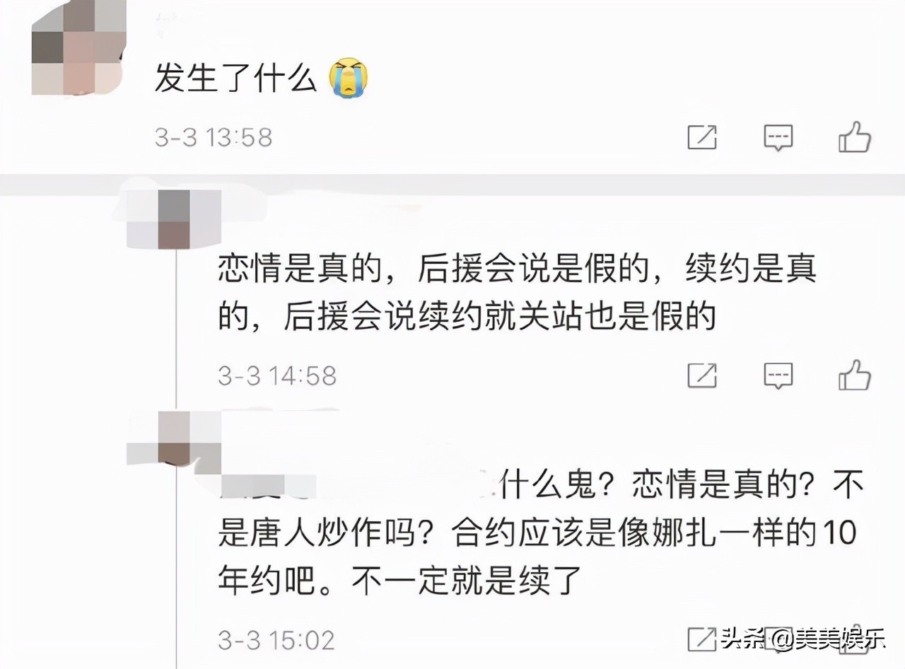 有人解释说陈瑶恋情传闻是真的,后援会说续约关站是假的,其实陈瑶还是会偷偷续约,但为了安抚粉丝,不敢承认。