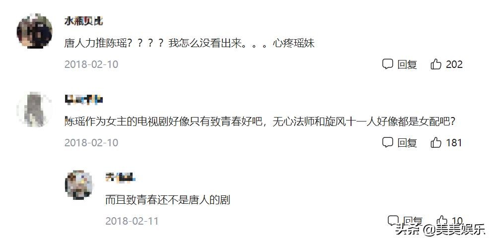 唐人影视甚至让陈瑶在《宿命之敌》中沦为三番,为两个初出茅庐新人做配角,简直不要太欺负人。