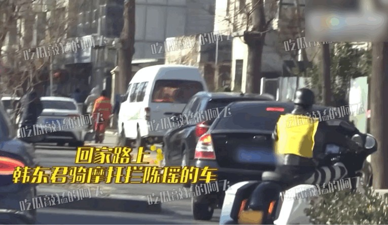 没想到回家路上遇到了骑摩托车出行的韩东君。