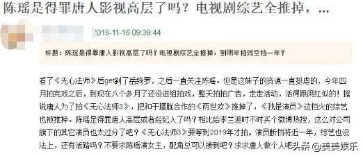 据说推掉了陈瑶的电视剧和综艺,导致她八个月无戏可拍 ,她还一度被传言得罪了高层。