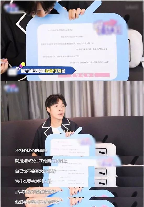 他还补充道:“自己不喜欢的事情为什么要对别人做,那其实他不是在追星啊,他追寻的是自己的满足感。”