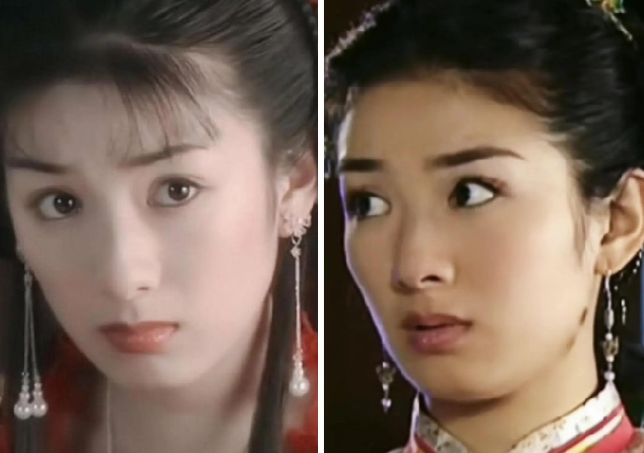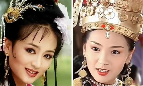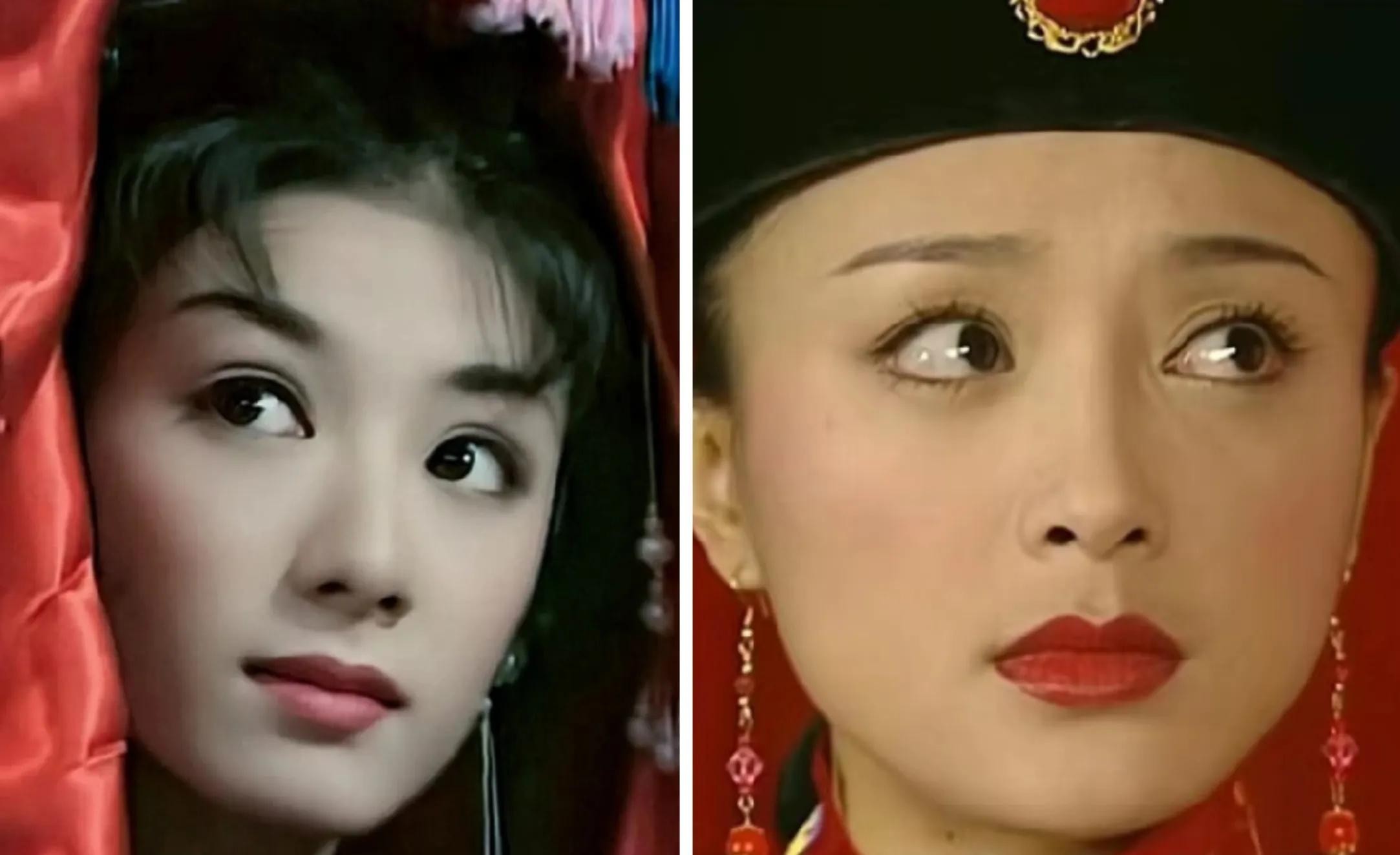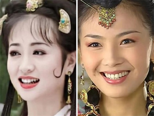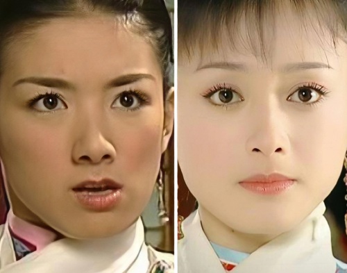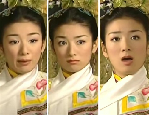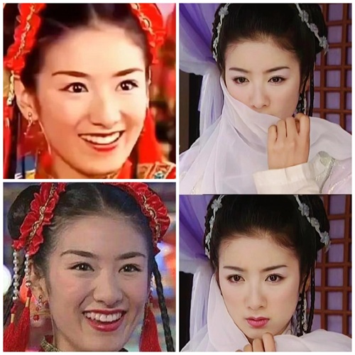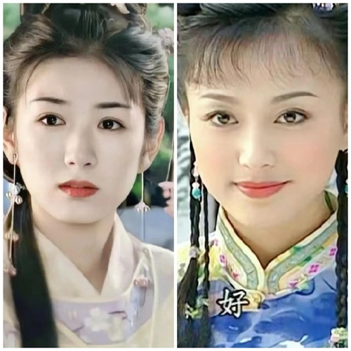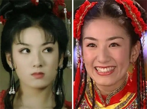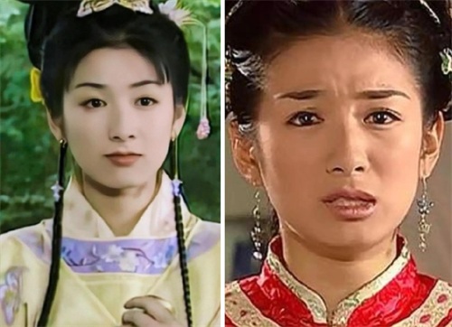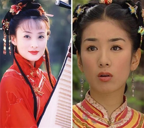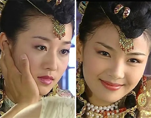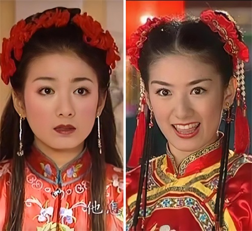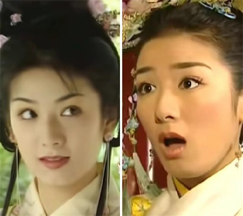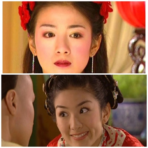 而右图是还珠的小燕子,妆容看上去有点脏脏的感觉,又加上剧情太过于现实,反而显得她的娇俏灵动也不太讨喜了。