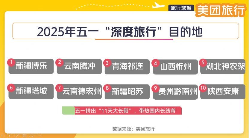 五一出游高峰将从4月26日前后开始,如节后请假4天甚至可“拼”出11天长假。美团旅行数据显示,目前四五线城市、少数民族自治州、祖国边境线等小众、秘境目的地机票搜索热度快速上涨,新疆博乐、云南腾冲、青海祁连县等原本“小众”的目的地,今年五一机票热度同比上涨均超100%。