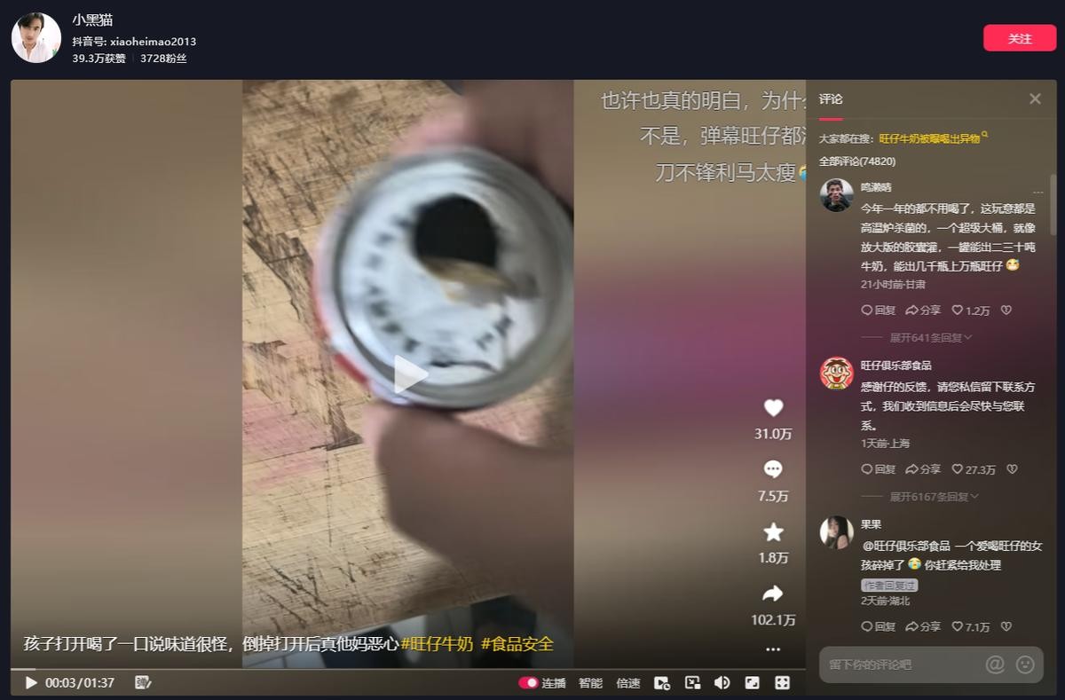 旺仔牛奶喝出大坨异物,品牌回应了!该消费者再发声,剧情反转!