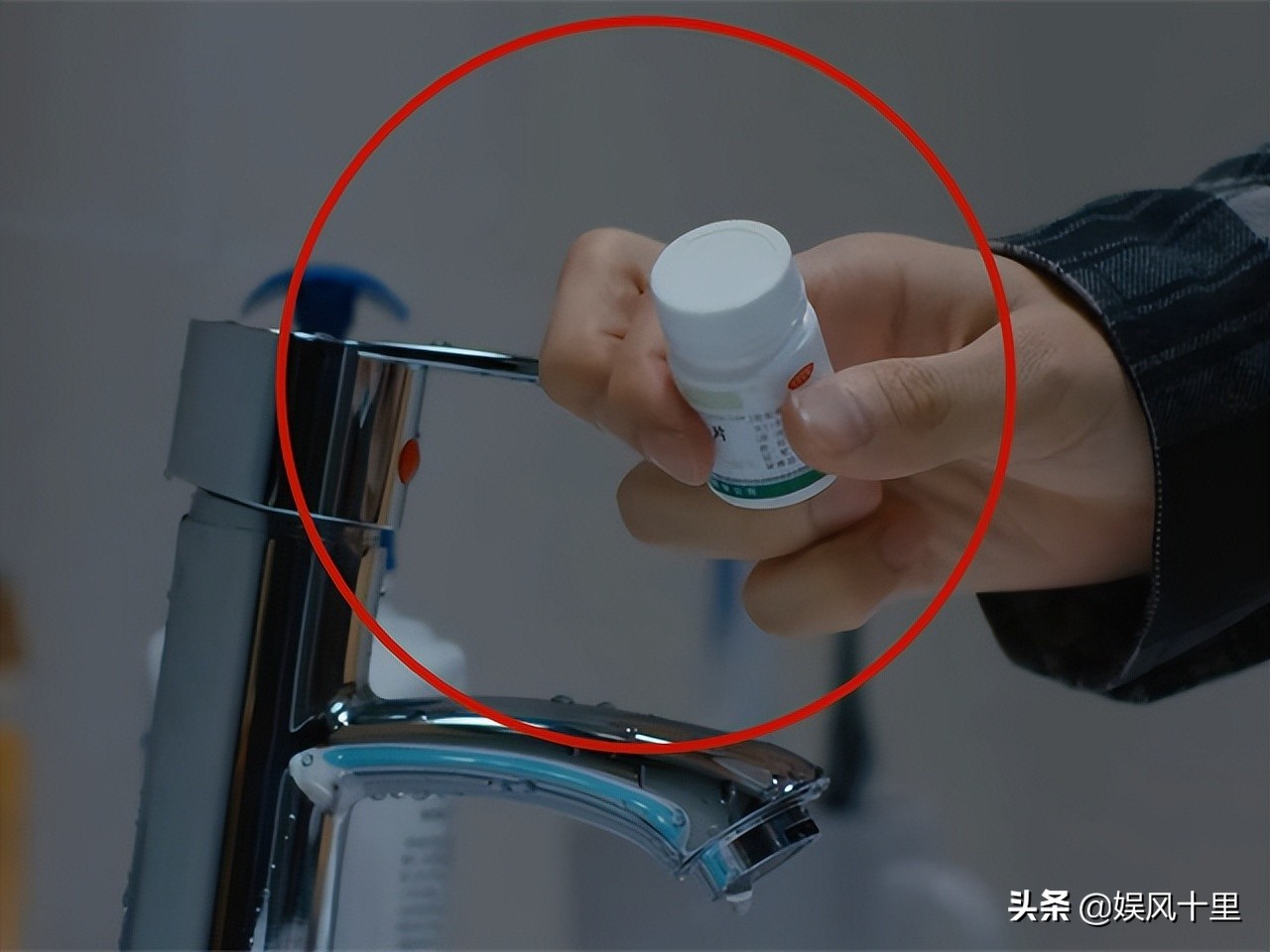 第二个细节在于庄文杰在警局中和丁生火谈话结束之后回到医院,面对镜子洗脸,他拿出了一瓶药。