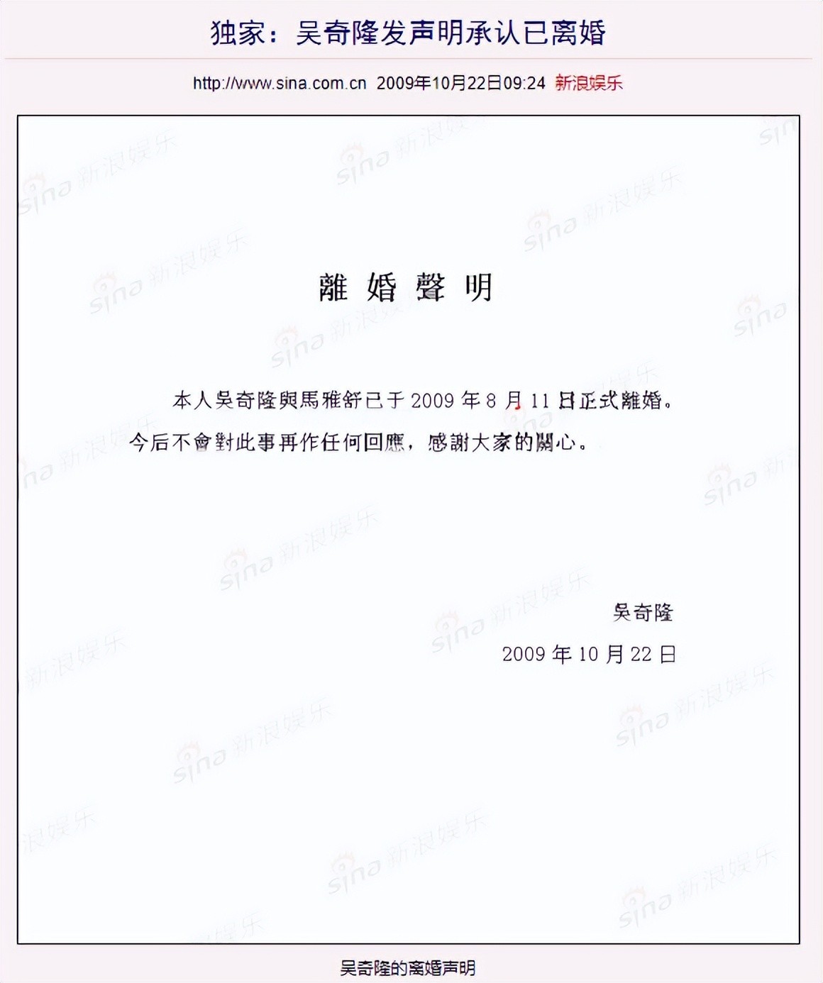 2009年8月11日,这对曾经被誉为娱乐圈金童玉女的恋人正式分道扬镳。
