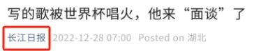 1.写的歌被世界杯唱火,他来“面谈”了.长江日报