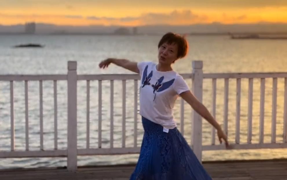 要知道,徐露今年已经49岁,视频中她依然是全素颜,穿着蝴蝶短袖和蓝色长裙,海边翩翩起舞。