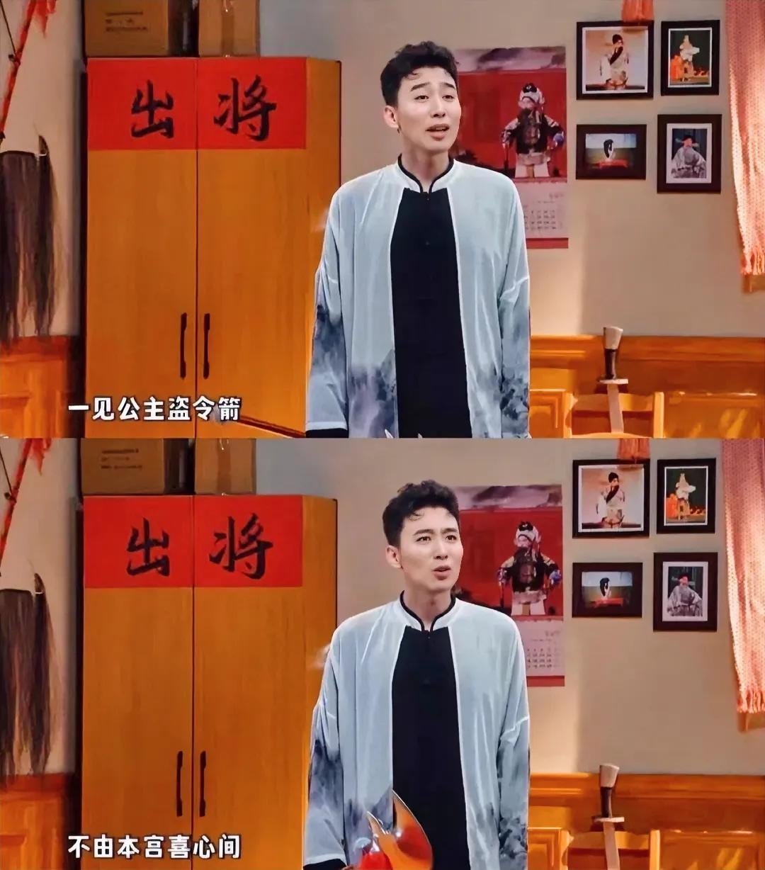 张弛与蒋龙在喜剧舞台搭档的《台下十年功》,就亮了一嗓子,唱了一段《叫小番》,可见童子功还是很扎实。