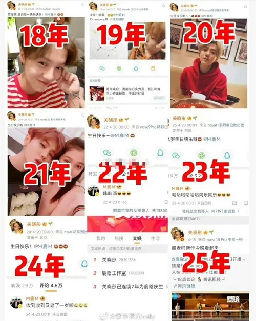 此后每年,关晓彤都会在微博给鹿晗送上生日祝福。