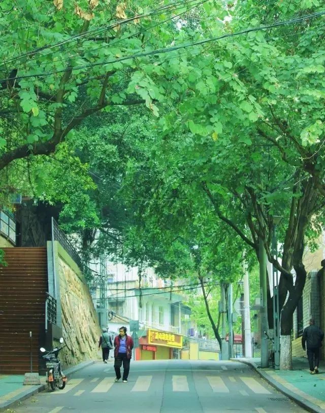 文曾路就似隐匿在喧嚣之中的“市外”桃源,这里没有居民区,没有喧闹的人流,路两边都是郁郁葱葱的树林和花草。