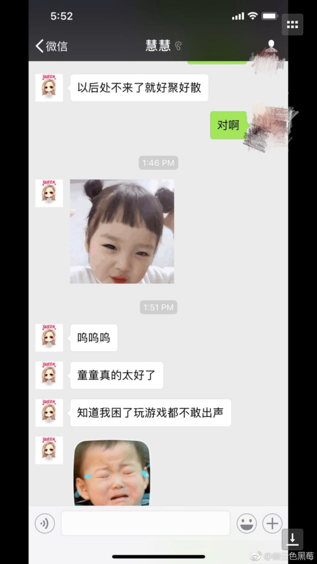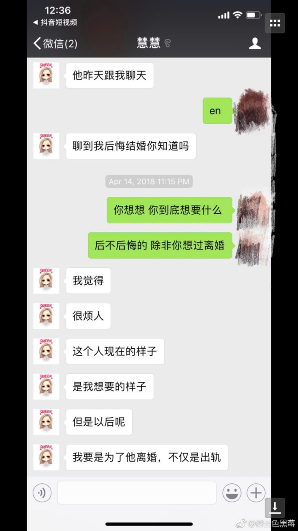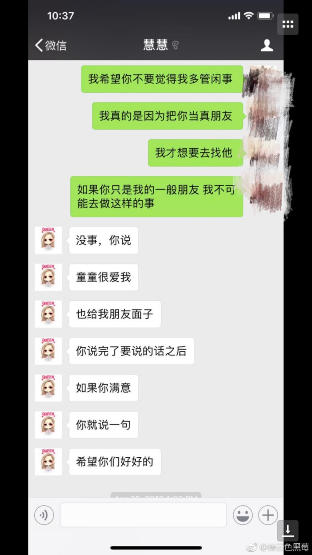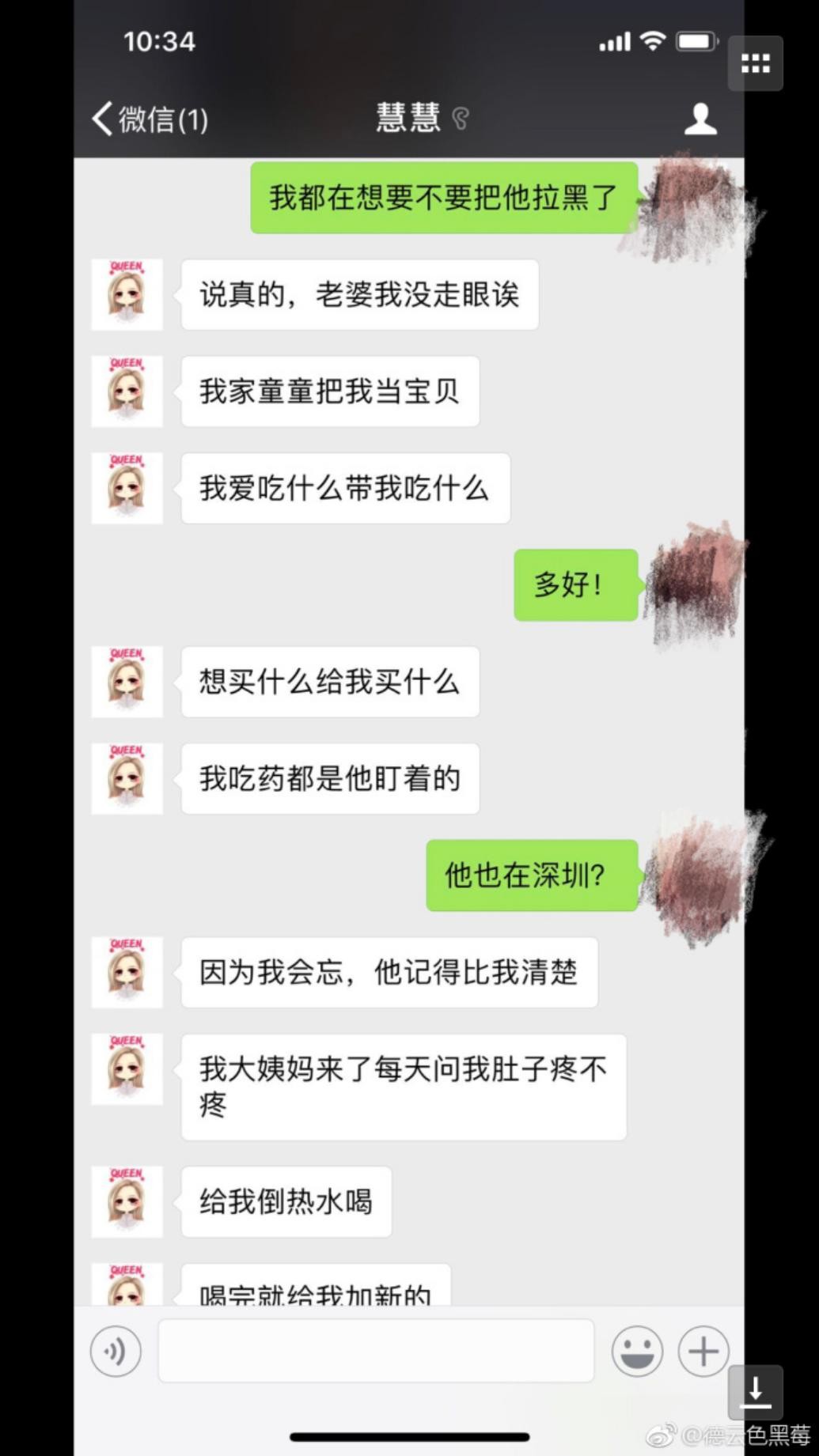 德云色黑莓,5月8凌晨在微博爆料,慧慧婚内出轨童童,聊天记录称两个都喜欢。