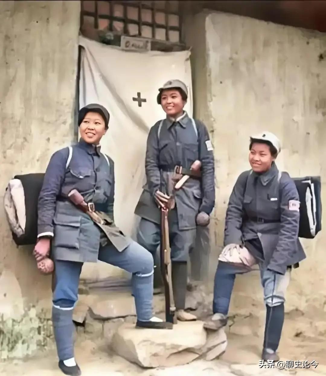 十几岁的女战士虽然年纪尚小,却已然扛起了保家卫国的重担,她们羞涩的神情让人不禁感慨当年时代的残酷。