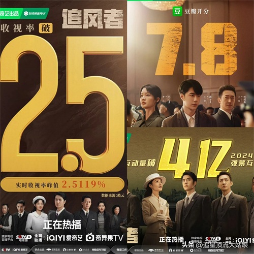 开播第一天爱奇艺站内热度突破6689,刷新2024年平台首日热度最高纪录。最高峰值达9350,位列平台年度谍战剧热度前茅,并在猫眼、云合、德塔文等榜单多次登顶榜一。抖音主话题播放量达40.1亿,实现31轮卫视/地方台重播,打破“一剧两星”政策限制。