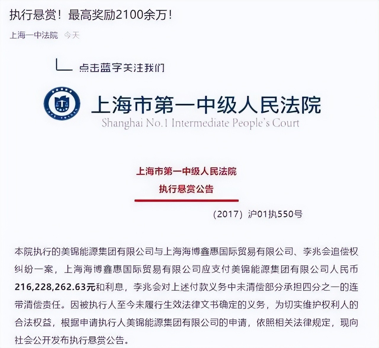 2021年,上海市发布悬赏公告,而里面的人,正是李兆会。