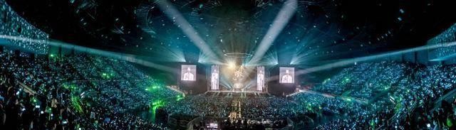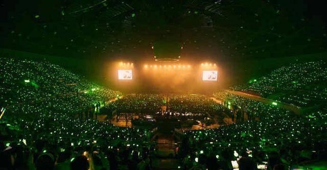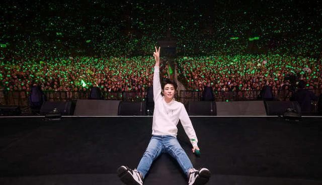 密集的应援灯照亮了整个场馆,展现出他此时此刻的喜悦和满足。观众的热情让他感受到了前所未有的支持。如果从舞台俯视,会看到满场的绿海,这是一张全景照片,记录下了这场盛大的演出。