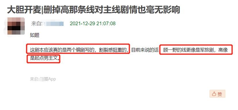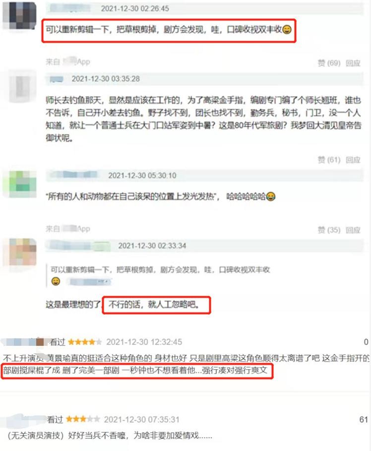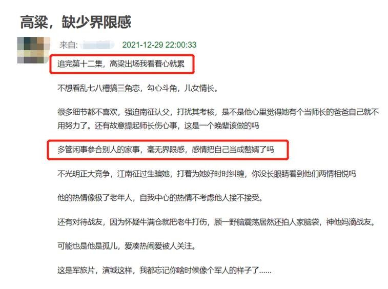 最绝的是高粱还硬要掺和人家的私事,强行让江南征认父亲,打扰她考核、故意提起师长的伤心往事,这军旅题材怎么愈发狗血起来了,甚至有网友调侃到他已经把自己当“赘婿”了。