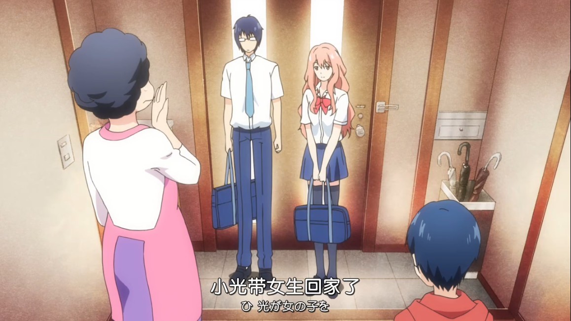 第二个甜头就是小筒把色叶带回家了,其实这是色叶的要求。按照死宅小筒的思想,是永远不可能把妹纸带回家的,但在色叶的要求下还是勇敢的带回来了。当他母亲看到自己儿子带女孩回家也是吓到了,我儿真的开窍了!