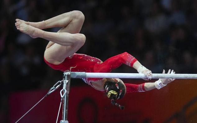 莫慧兰一个团身前空翻越杠拆械,