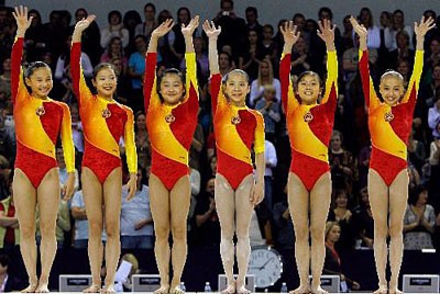 她获得了女子体操团体比赛的冠军,