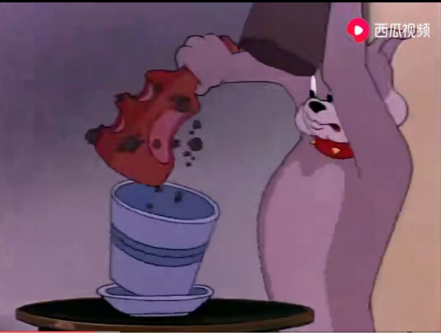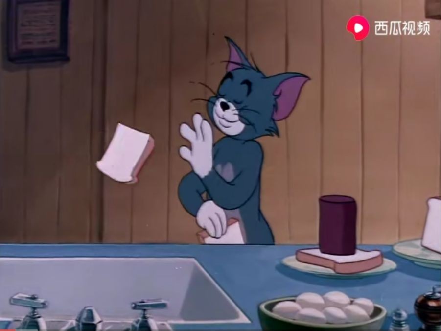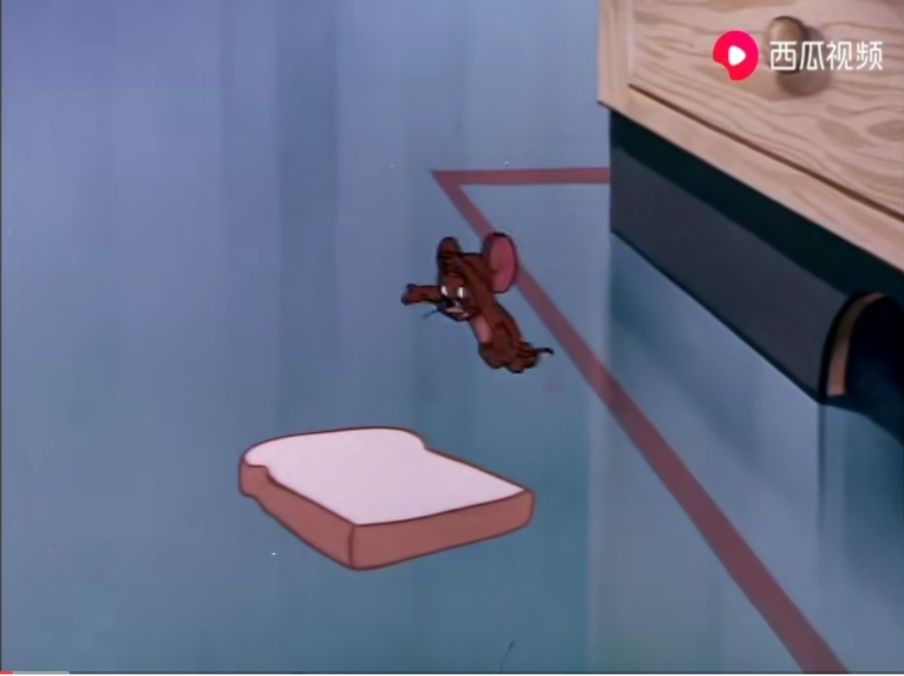 后来,汤姆不小心掉了一片面包在地上,杰瑞看到后马上冲出来想抢夺,但是面包却被汤姆无情的夺走,可是汤姆拿了面包干什么了呢? 扔掉了