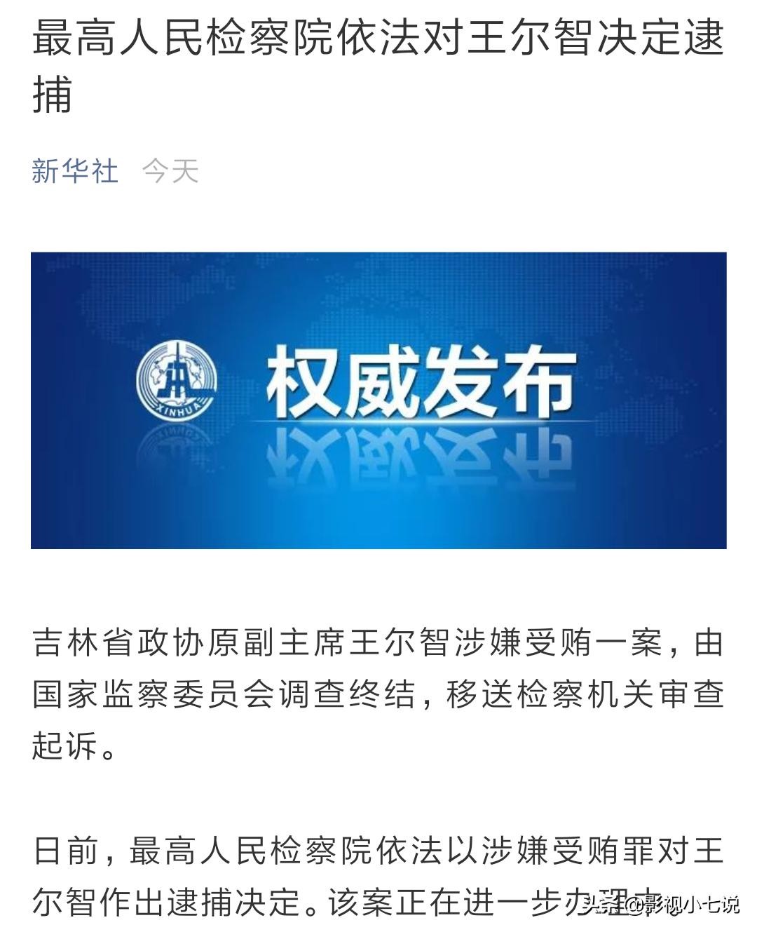 1月30日,新华社消息,吉林省政协原副主席王尔智涉嫌受贿,最高人民检察院依法对其逮捕,即将审查起诉。