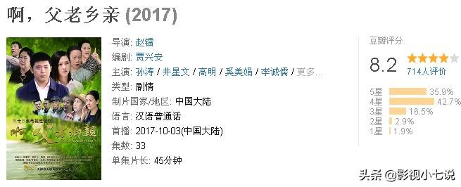 TOP04:《啊,父老乡亲》,豆瓣评分8.2,33集,优酷视频、搜狐视频、腾讯视频均可观看。