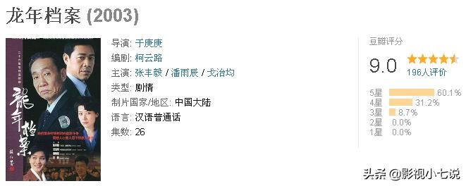 TOP01:《龙年档案》,豆瓣评分9.0,26集,腾讯视频、B站、PP视频、乐视视频、搜狐视频均可观看。