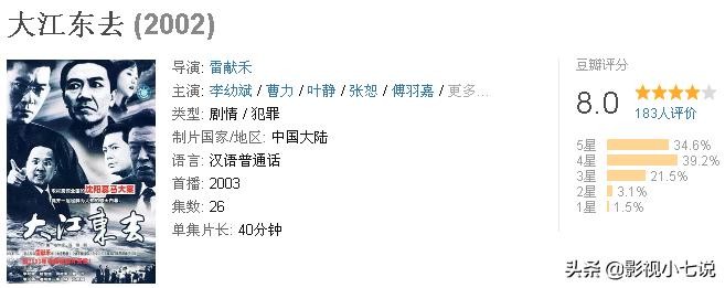 TOP07:《大江东去》,豆瓣评分8.0,26集,腾讯视频、乐视视频、爱奇艺视频均可观看。