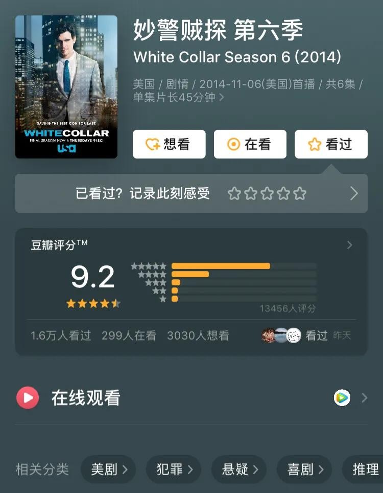 美国USA network出品,此剧讲述剧情讲述一名诈骗高手与逮捕他的FBI探员搭档合作破案的故事。猫和老鼠,男男搭档的探案剧。