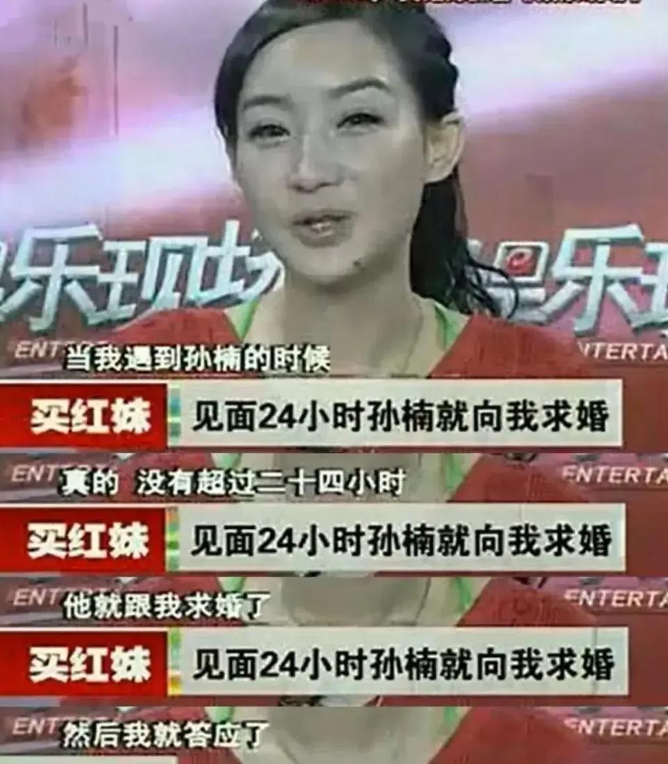 2000年,孙楠作为嘉宾出席了买红妹主持了一档综艺节目。录制结束后,便邀请买红妹共进晚餐,还提出了结婚的请求。