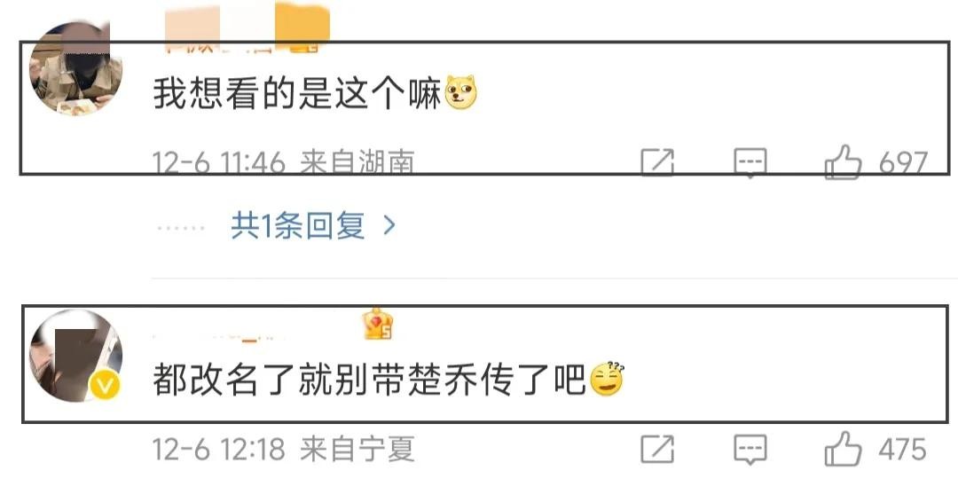 网友表示,演员不认识,剧情魔改,干脆换名字吧,别叫《楚乔传》了。