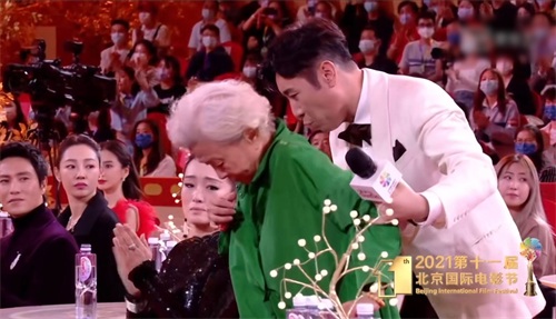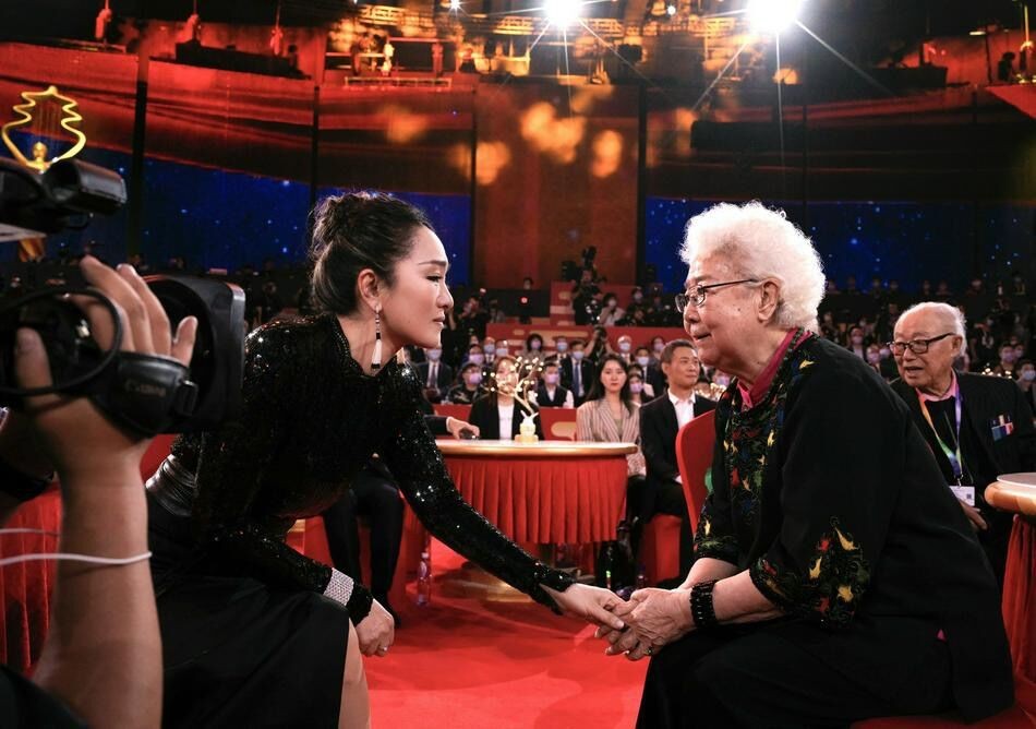 93岁田华北影节悼念去世演员,巩俐感动落泪,两人同框握手显温馨