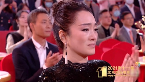 也许是被前辈们为艺术而奋斗一生的精神所感动,巩俐在台下多次落泪,还用手擦拭眼角的泪水,神情十分哀伤。