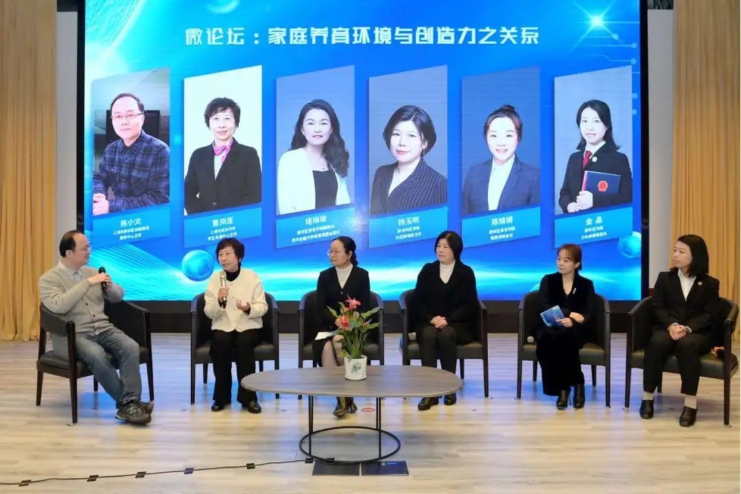 微论坛环节围绕“家庭养育环境与创造力之关系”的主题展开了深入讨论。上海市风华中学从心理学角度探讨了孕育创造力所需的心理养分,分享了学校在培育中学生创造力方面所能提供的支持与策略,家长代表从家庭生活角度探讨如何营造有利于培养孩子创造意识和能力的家庭环境,静安社区学院从社区视角分享社区如何提供丰富资源促进孩子创造力发展的举措,静安区法院少年家事庭则从法律角度强调保护孩子基本权利、守住法律底线对于创造力培养的重要性。