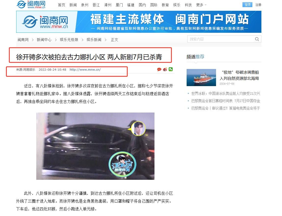 徐开骋多次被拍去古力娜扎小区 两人新剧7月已杀青 来源:闽南网