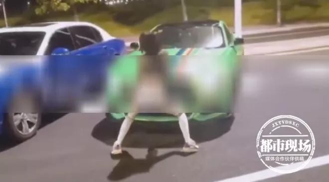 深夜街头香车美女大跳艳舞,画面辣眼睛