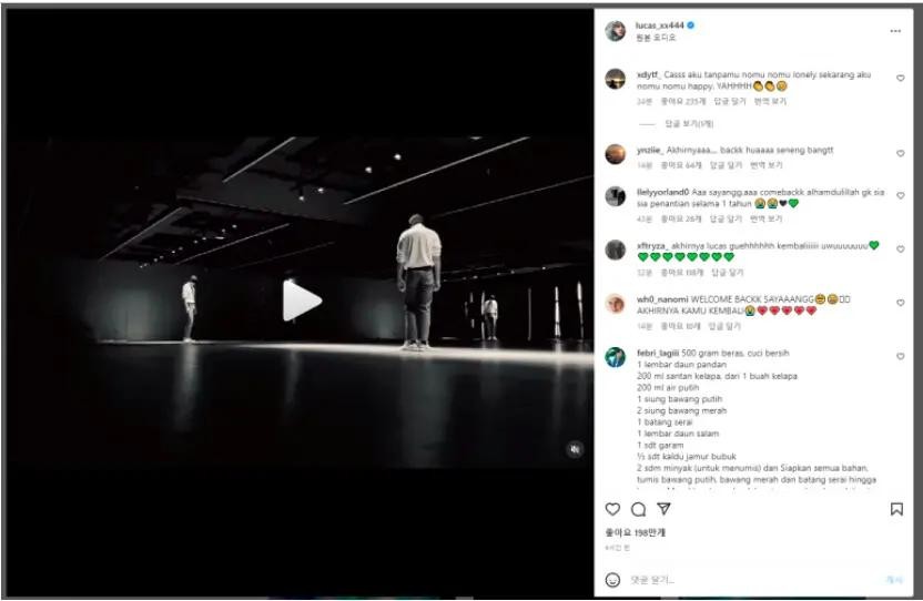 Lucas的SNS也迎来了久违的更新,上传了他在练习室的舞蹈视频。