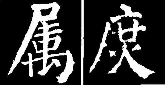 2.以纵取势,内紧外松。《勤礼碑》体势多取纵势,这样每个字看上去很紧密,但通过字内部的穿插、揖让、避就、虚实等手法的运用,整个字形端庄、稳重,有一种庙堂之气。