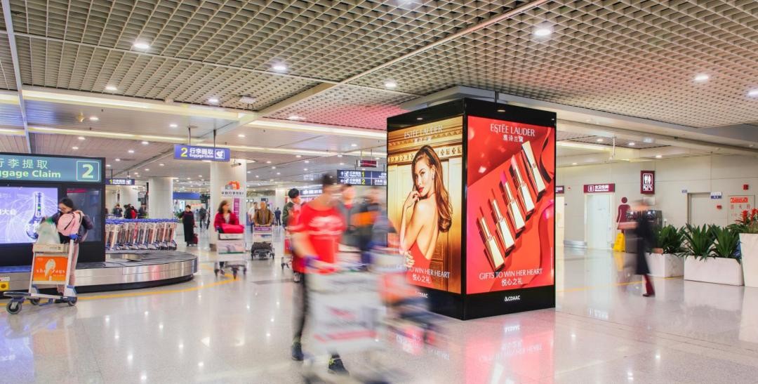 除了杂志,在机场,我们再看看平时几乎不会正眼看一眼的包柱广告。