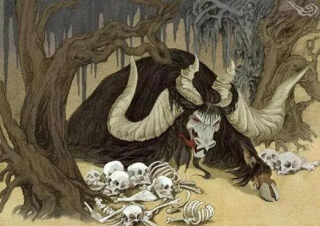 是一种像牛,有些四个角,类似人的眼镜,长着猪的耳朵,发出的声音像大雁的一种吃人怪物。
